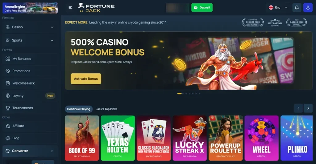 Here are the game and provider breakdowns for FortuneJack. In 2026, the selection remains one of the largest in the crypto casino scene.