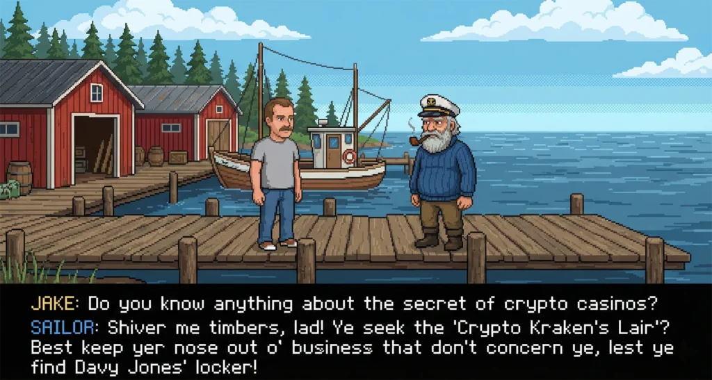 Jake Saarijärvi (Jake from Finland) playing an imaginary Lucasarts game where a casino gangster offers a lucrative affiliate deal.